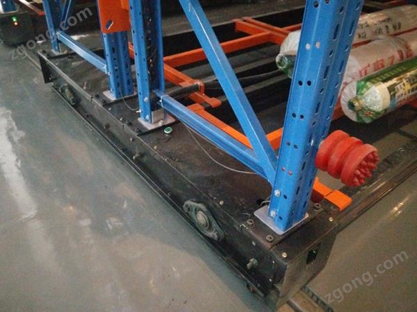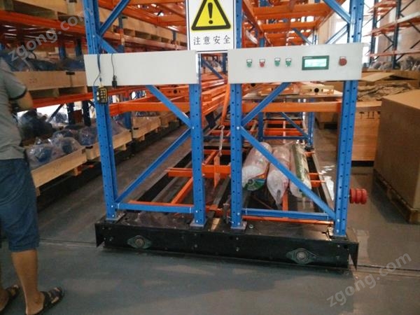 移動(dòng)式貨架易控制,安全可靠。每排貨架有一個(gè)電機(jī)驅(qū)動(dòng),由裝置于貨架下的滾輪沿鋪設(shè)于地面上的軌道移動(dòng)。
