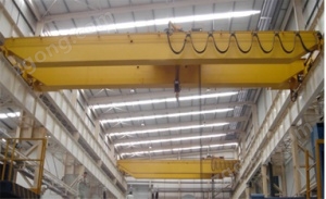 主梁上面鋪設有軌道,供起重小車沿主梁方向作橫向移動。主梁與箱型端梁焊接而成,端梁中間布置有接頭,螺栓連接,供橋架分拆運輸。