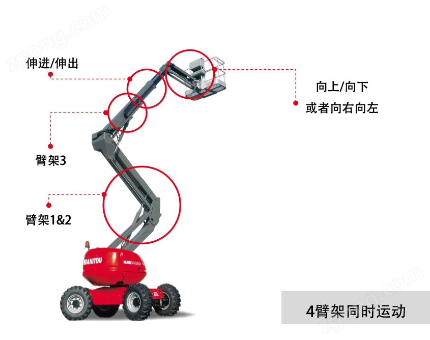 2,四個臂架動作同時進行