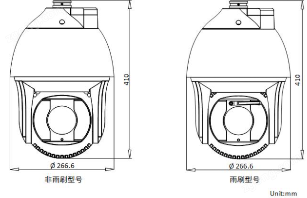 外形尺寸 注:左圖為非雨刷型號外觀,右圖為雨刷型號外觀