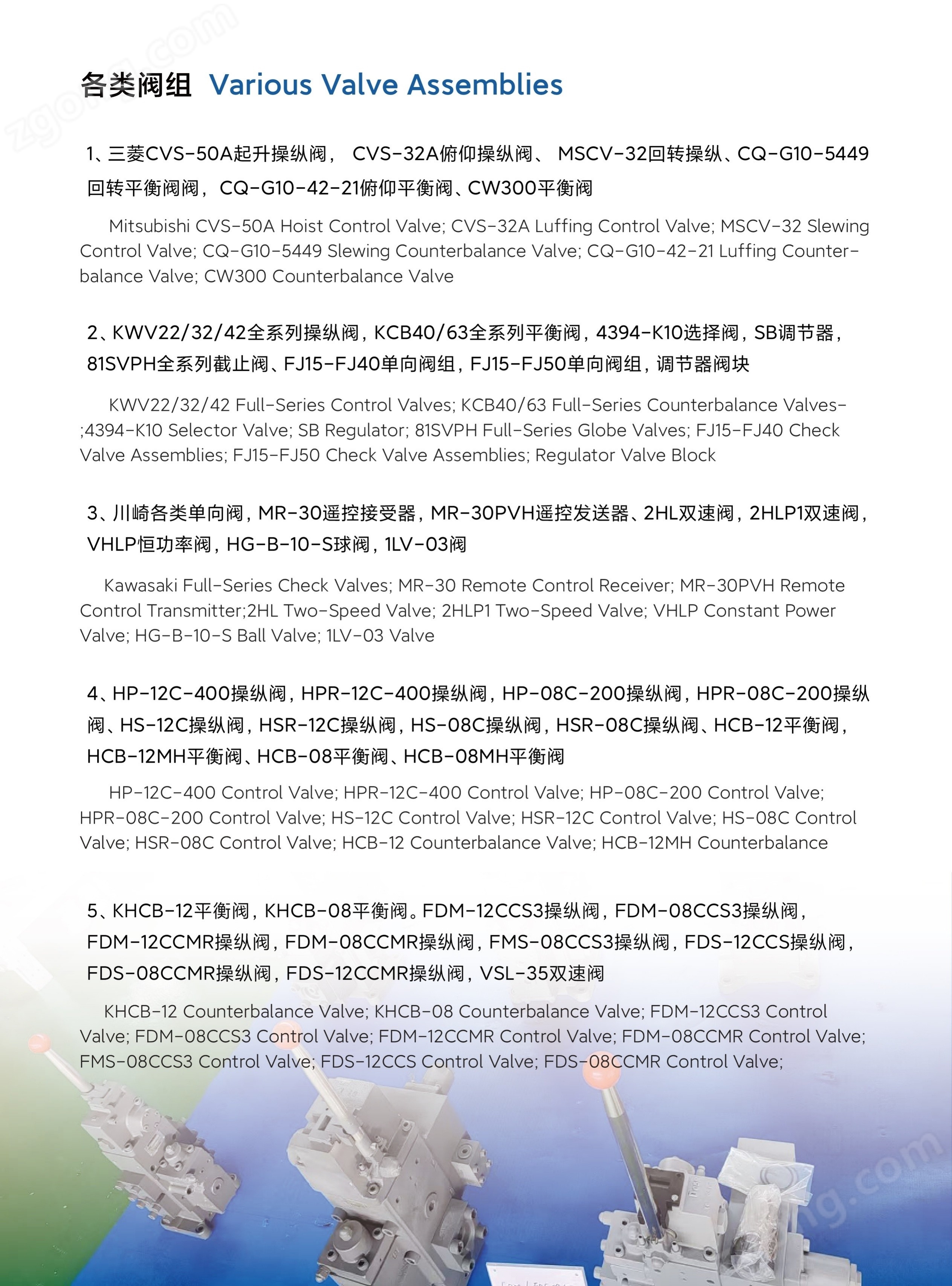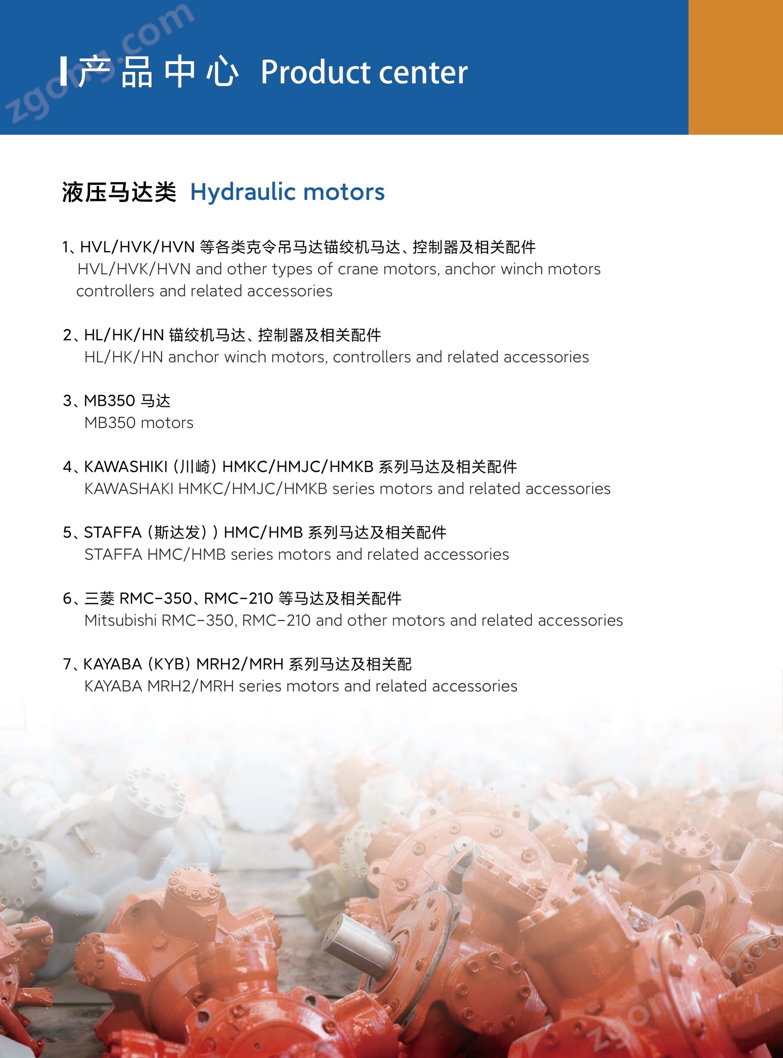 IHI,川崎,STAFFA,KAYABA,三菱RMC及RMM,麥基嘉HMB等系列馬達(dá)、液壓泵、控制閥、減速機(jī)、閥件等配件的維修